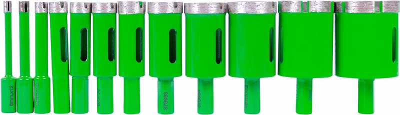 - Алмазные коронки для сухого алмазного бурения с микроударом