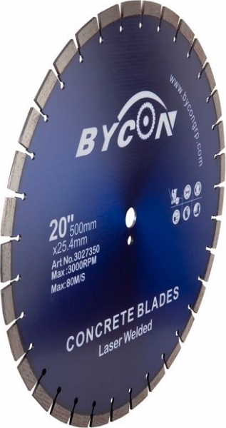 Алмазный диск Bycon Laser Uni-15 500 мм (Байкон Лазер Уни-15 500 мм) применяются, как правило, на бензорезах, электрических резчиках, камнерезных станках, стенорезных машинах, швонарезчиках. Обрабатываемые материалы: бетон, железобетон, гранит, природный камень, черепица, клинкерный кирпич (клинкер) и другие материалы.
