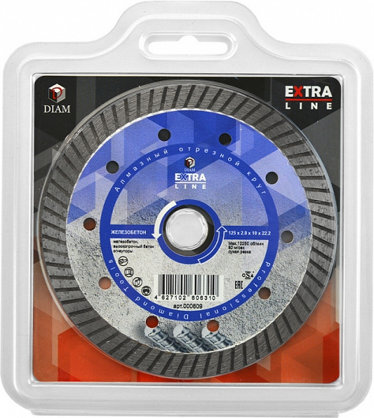 Цена и технические характеристики алмазного отрезного круга Diam Extra Line Turbo Железобетон 125 мм: