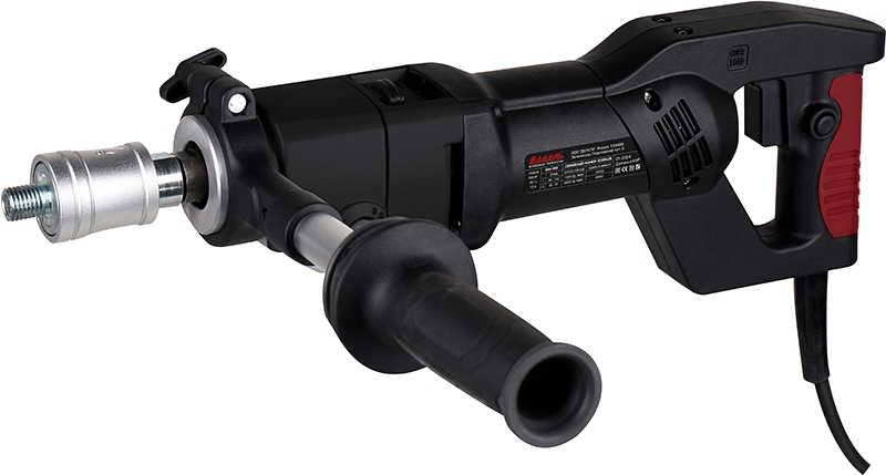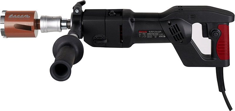 Бесщеточная дрель алмазного бурения с микроударом Адель DH-M1 (Adel ДХ-М1) предназначена для сухого алмазного сверления с микроударом отверстий Ø до 132 мм в бетоне, железобетоне, кирпиче, камне и других особенно твердых материалах при высокой рабочей скорости; как с использованием станины, так и "с рук"; для профессионального использования. Отличный вариант как для монтажников кондиционеров, так и для электриков. С дополнительными переходниками позволяет работать как алмазными коронками стандартной длины, так и коронками для подрозетников.