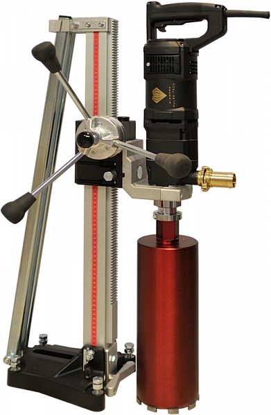 Дрель с микроударом для алмазного бурения Cardi DPH 3000 ME-17 (Карди ДПХ 3000 МЕ-17) – универсальный ручной электрический двигатель для сухого (без подачи воды) и мокрого (с подачей воды) сверления отверстий Ø 32 – 162 мм алмазными коронками в бетоне, железобетоне, бетонных блоках, кирпиче (щелевом, шамотном, силикатном), асфальте, пенобетоне, газобетоне, керамзитобетоне, вулканическом туфе, песчанике, каменной кладке, известняке и многих других строительных и природных материалах как в ручном режиме, так и со стойкой при монтаже сантехники и системы отопления, защитных ограждений и перил, систем кондиционирования, вентиляции, дымоходов, электрики; прокладке слаботочных систем; отборе кернов и многом другом. Идеально подходит для использования с алмазными коронками, требующими сверление с микроударом!