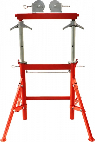 Двойная складная регулируемая роликовая опора для труб Remmers Titan 43 (Реммерс Титан 43) предназначена для работы с трубами Ø до 910 мм (43"). Широко используется при сварке тяжелых, фасонных, твердых и круглых труб; для поддержки труб во время накатывания желобков, нарезания резьбы, резки, снятия фаски, вырезания отверстий и т.д.