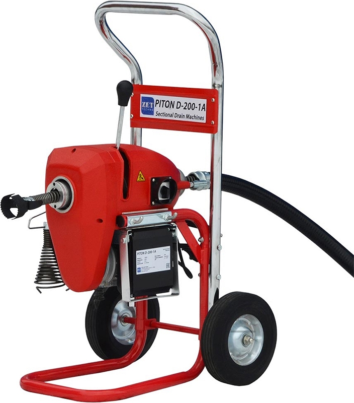 Электромеханический секционный прочистной аппарат для канализации Piton D-200-1A (Питон Д-200-1А) – электромеханическая cекционная прочистная машина для прочистки канализационных труб Ø 40 – 300 мм, длиной до 90 м.