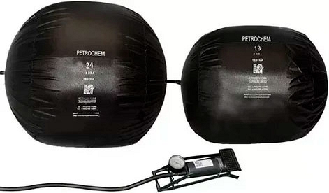 Химостойкие термостойкие цилиндрические пневмозаглушки для труб HFT PetroChem PSO0024 (ХФТ ПетроЧем ПСО0024) – маслобензостойкие пневматические заглушки с внутренней мембраной, защищающей надувной латексный мешок, для временного перекрытия трубопроводов и газопроводов Ø 600 мм (24") с углеводородными газами и жидкостями, особенно в случае ограниченного доступа в трубу при проведении ремонтных работ, для проверки герметичности трубопроводных систем, гидростатических испытаний при низком давлении, термического формования изгибов на месте, сантехнических работ, предотвращения попадания в трубы атмосферных осадков, мусора, животных и т.д. при механической обработке, в волоконно-оптической отрасли.