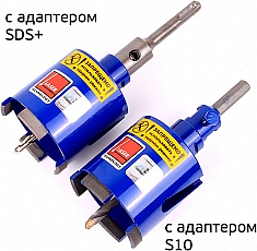 - Комплектуется центровочным твердосплавным сверлом с магнитным переходником М16 / SDS Plus для установки сверла в патрон перфоратора