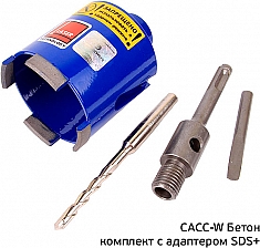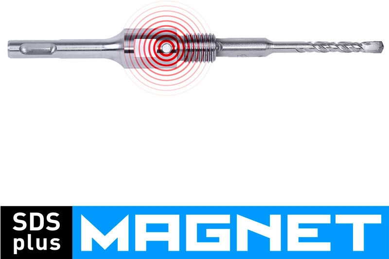 - Комплектуется центровочным твердосплавным сверлом с магнитным переходником М16 / SDS Plus для установки сверла в патрон перфоратора