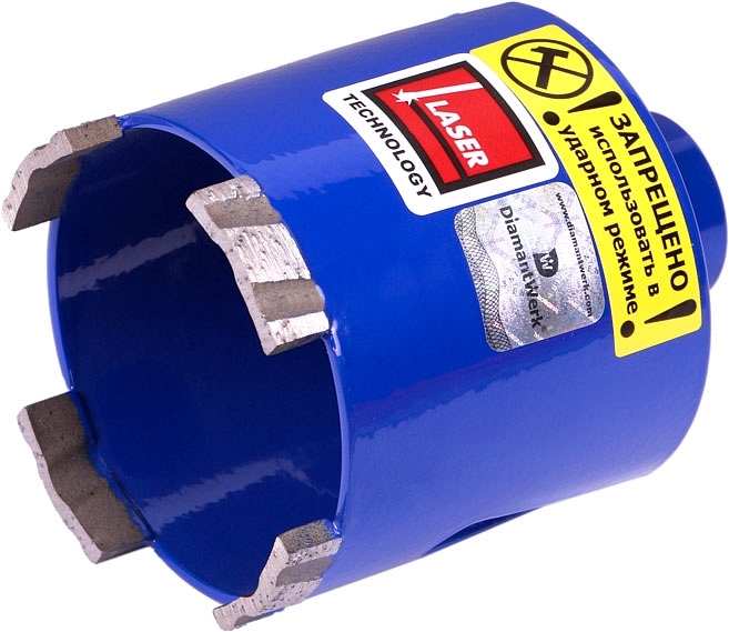 - Алмазные сверла в отличии от коронок с твердосплавными режущими элементами строго запрещено использовать в ударном режиме