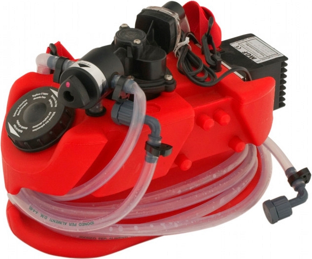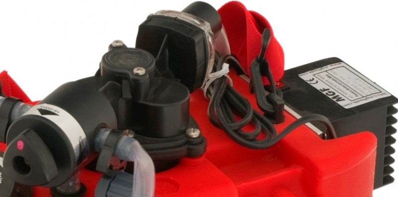 Насос для промывки системы отопления MGF Mini (МГФ Мини) – профессиональный сантехнический инструмент для сантехников для быстрого, чистого и эффективного удаления накипи и очистки от известняка (известкового налета) кислотными химикатоми нагревательных змеевиков, теплообменников, котлов, бойлеров, систем отопления и охлаждения путем прокачки через них жидкого реагента, растворяющего известковые отложения.