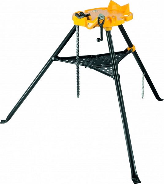 Переносной складной верстак-тренога с цепными тисками Rems Aquila 3B (Ремс Акуила 3Б) – прочная переносная станция обработки труб Ø 10 – 165 мм (1/8" – 6") со встроенными цепными тисками на складной треноге. С практичной полкой. Для мастерских и промышленности. Для стройплощадки и мастерской.