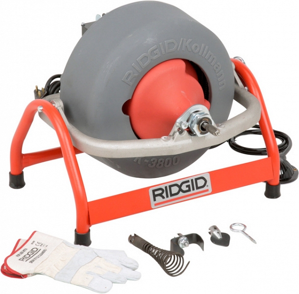 Электрическая прочистная машина барабанного типа Ridgid K-3800 (Риджид К-3800) предназначена для прочистки сточных / канализационых труб Ø 20 – 110 мм (3/4" – 4") на длину до 30 м.