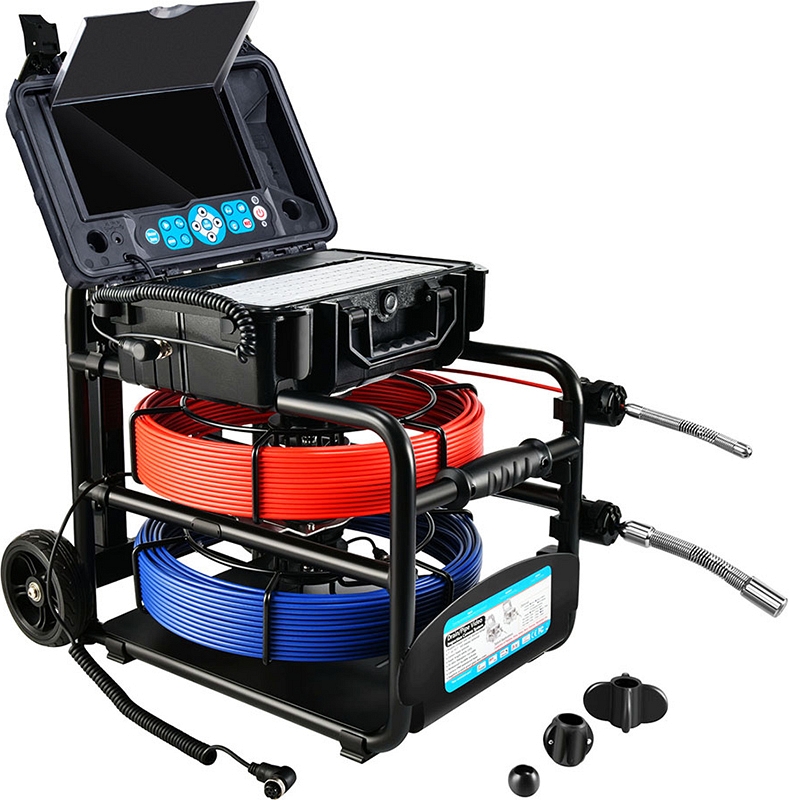Проталкиваемая система видеоинспекции канализации Rotorica 3499F-Dual-40 (Роторика 3499Ф-Дуал-40) с камерами CMOS, Ø 18 × 135 мм, широким углом обзора 82° и Ø 23 × 155 мм, широким углом обзора 120°, разрешением формата Full HD 1080P AHD (1920 × 1080), записью видео и аудио, встроенными счетчиками расстояния и катушками с кабелями Ø 4,8 мм × 40 м и Ø 5,2 мм × 40 м предназначена для осмотра внутренних трубопроводов, канализации и сливов, а также для инспекции каналов, дымоходов, воздуховодов в производствах и домах.