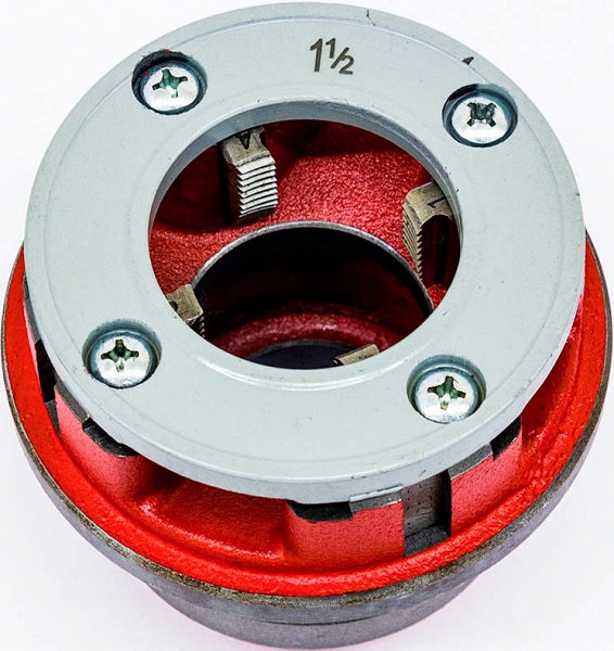 Резьбонарезная головка для ручного клуппа Brexit BSPT R SS 1 1/2" (Брексит БСПТ Р СС 1 1/2") предназначена для нарезки правой трубной конической резьбы BSPT R на стандартных черных стальных водопроводных и газопроводных трубах Ø 1 1/2". Подходит к ручным резьбонарезным клуппам Brexit, а также других производителей (совместимость обязательно уточняйте у специалистов!).