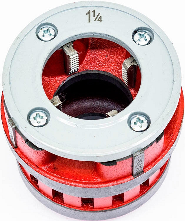 Резьбонарезная головка для ручного клуппа Brexit BSPT R SS 1 1/4" (Брексит БСПТ Р СС 1 1/4") предназначена для нарезки правой трубной конической резьбы BSPT R на стандартных черных стальных водопроводных и газопроводных трубах Ø 1 1/4". Подходит к ручным резьбонарезным клуппам Brexit, а также других производителей (совместимость обязательно уточняйте у специалистов!).