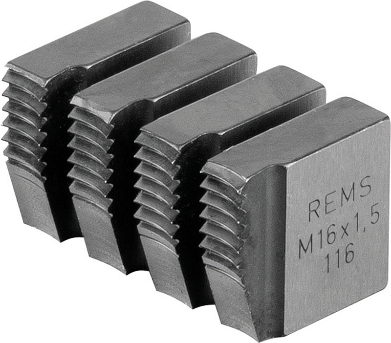 Резьбонарезные гребенки Rems M16×1,5 (Ремс М16×1,5) предназначены для нарезки правой трубной метрической резьбы M (EN 60423) с шагом 1,5 мм на электроизоляционных трубах Ø 16 мм с применением ручных и электрических резьбонарезных трубных клуппов Ева, Амиго, Амиго 2, Амиго 2 Компакт.