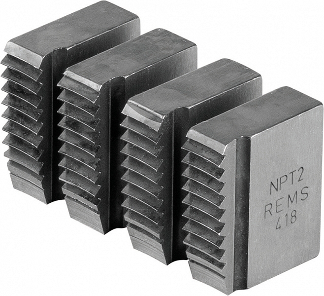Резьбонарезные плашки Rems NPT 2" (Ремс НПТ 2") предназначены для нарезки правой трубной конической резьбы NPT (Taper Pipe Thread ASME B1.20.1) на стальных трубах Ø 2" с применением ручных и электрических резьбонарезных трубных клуппов Ева, Амиго, Амиго 2, Амиго 2 Компакт.