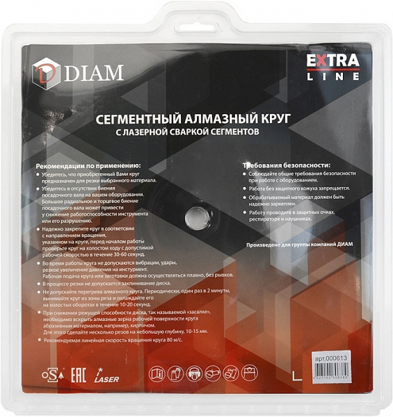 – С водяным охлаждением: предназначен для работы с водяным охлаждением, использование без подачи водяного охлаждения может привести к выходу из строя, за исключением, когда предназначен как для сухой, так и для мокрой резки - Корейские технологии: изготовлен по технологиям и под контролем ведущих производителей алмазного инструмента Южной Кореи, специально по заказу ГК Диам