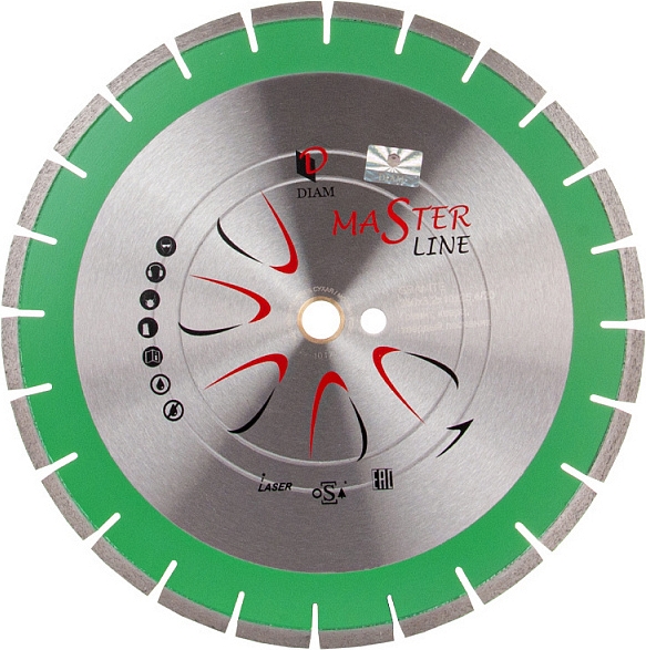 Сегментный алмазный круг Diam Master Line 1A1RSS Гранит 350 мм (Диам Мастер Лайн 1А1РСС Гранит 350 мм) – специальный сегментный алмазный отрезной диск для сухой и мокрой резки гранита, кварца, клинкера, твердых песчаников на бензорезах, электрических резчиках, камнерезных станках, стенорезных машинах, швонарезчиках и другом оборудовании, как с подачей, так и без подачи охлаждающей жидкости.