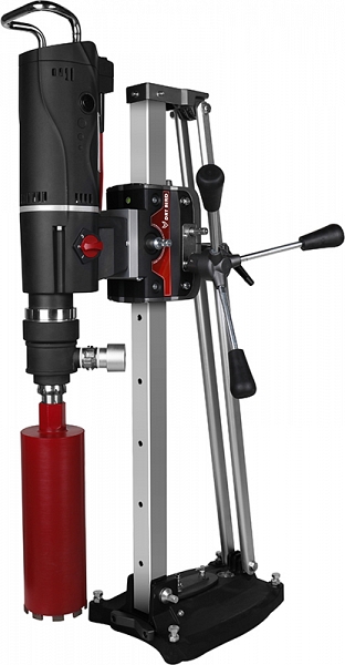Станина для алмазного сверления с микроударом Bycon DBS-352 (Байкон ДБС-352) – сверхнадежная новейшая стойка для алмазного бурения c анкерно-вакуумным основанием, транспортировочными колесами, быстросъемным креплением двигателя для сверления отверстий Ø до 352 мм, в том числе и с микроударом.