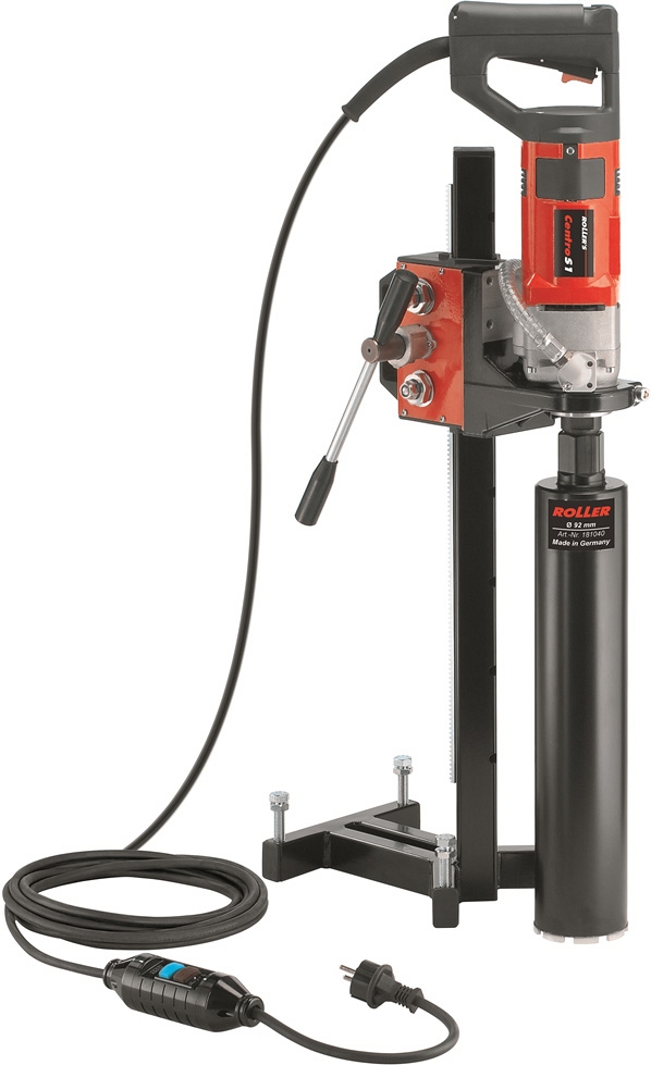 Станок алмазного бурения Roller Centro S1 (Роллер Центро С1) – алмазная сверлильная машина для безударного алмазного сверления отверстий в железобетоне Ø 12 – 102 (132) мм и в кирпиче Ø 12 – 162 мм. Отлично подходит для прокладки газовых и санитарно-технических коммуникаций, систем отопления, связи, вентиляции и т.д. Для взятия контрольных кернов.