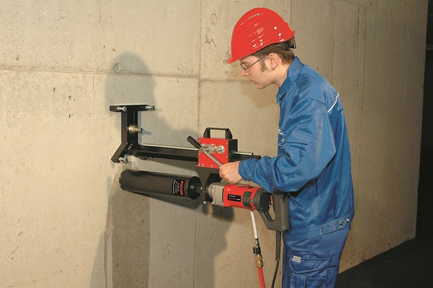 | 182000 R | Сверлильная стойка S. Устойчивая стойка для сверления коронками до Ø 220 мм. Для машин с посадочной шейкой Ø 60 мм. В комплекте: Г-образный ключ SW 6, рожковый ключ SW 19, 2 распорных дюбеля М12, 10 дюбелей М12, ударник для забивки дюбелей, рифленая анкерная шпилька М12 × 65 с гайкой и шайбой |