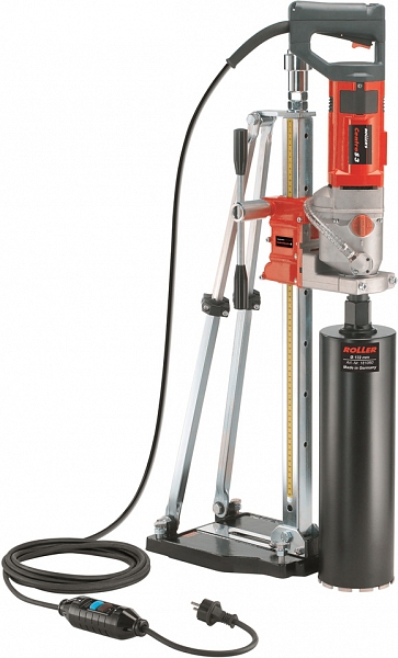 Станок алмазного сверления Roller Centro S3 (Роллер Центро С3) – мощная надежная универсальная машина для бурения алмазными кольцевыми коронками отверстий в железобетоне до Ø 152 (200) мм, в кирпиче до Ø 252 мм, а также в других материалах. Для сухого и мокрого сверления с рук или с использованием сверлильной стойки. Отлично подходит для прокладки газовых и санитарно-технических коммуникаций, систем отопления, связи, вентиляции и т.д. Для взятия контрольных кернов.