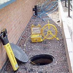 - При использовании генератора поиск может осуществляться контактным методом(когда генератор в удобном месте подключается к искомой коммуникации непосредственно. На расстоянии 8-10 метров перпендикулярно коммуникации генератор заземляют. Вокруг коммуникации – поле, которое улавливается трубокабелеискателем) и бесконтактным (когда подключение генератора к трубопроводам и кабелям невозможно или нежелательно. Генератор заземляют в двух точках, создавая вокруг коммуникации поле. Для поиска используется «отраженная величина» этого поля. Для поиска керамических, пластиковых, бетонных, деревянных других неметаллических коммуникаций используется трассировщик коммуникаций DIGITRACE 30/50/80 с проводом длиной 30, 50 или 80 метров)
