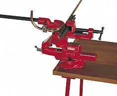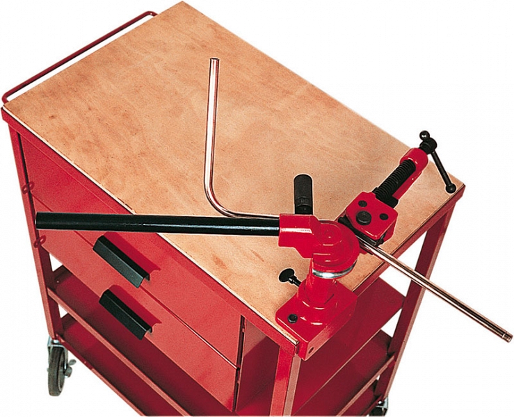 – Желтые стандартные сегменты: Ø труб 10 – 22 мм, толщина стенки труб 1 - 1,5 мм, угол изгиба 0° – 180°, малый радиус изгиба - Дополнительная принадлежность для крепления на верстаке: опорное основание, в которое устанавливается трубогиб, экономит место и позволяет работать в горизонтальном и вертикальном положении, хранится в чемодане для трубогиба