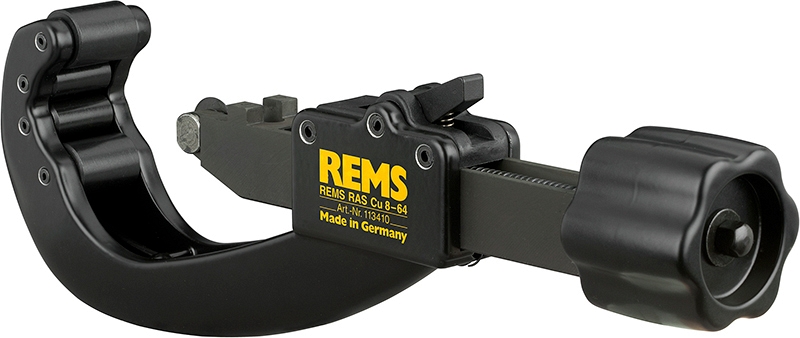 Труборез ручной для медных труб Rems Ras Cu 8-64 (Ремс Рас Ку 8-64) с телескопическим шпинделем и возможностью быстрой перестановки – прочный высококачественный инструмент для резки медных труб Ø 8 – 64 мм (3/8" – 2 1/2"), толщиной стенки до 3 мм.