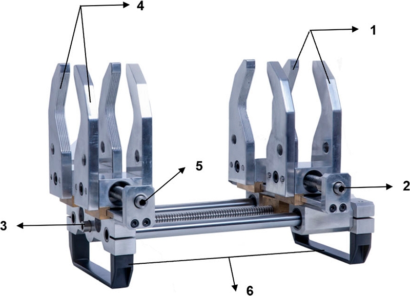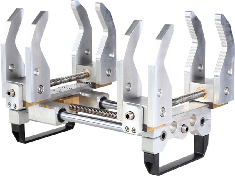 - 2 каретки: одна неподвижная, другая перемещается по раме при помощи центрального винта – на каждую из кареток можно установить как зажим для трубы, так и зажим для фитинга, входящие в стандартную комплектацию, что делает центратор удобным и универсальным