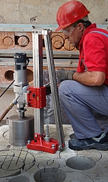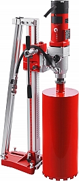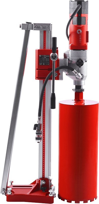 Установка алмазного бурения Cardi 200 (Карди 200) предназначена для алмазного сверления отверстий Ø 30 – 200 мм (1 1/8" – 8") алмазными сверлильными коронками в бетоне, слабо и среднеармированном бетоне, а также Ø 30 – 250 мм (1 1/8" – 10") в асфальте, кирпичной и каменной кладке и т.д. с подачей воды.