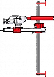 - Наклонная колонна, с сантиметровой линейкой сбоку для отслеживания глубины засверливания, крепится на шарнирах к опорной плите и имеет дополнительный упор для большей жесткости, возможность алмазного сверления отверстий под углом от 0 до 45°