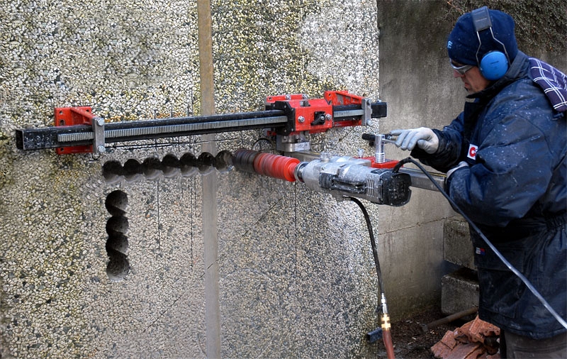 - Делать отверстия в стенах с использованием метода сверления швов, при котором на одной линии высверливается серия отверстий