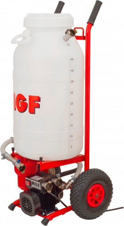 Установка для заполнения, промывки, продувки теплообменников системы отопления, охлаждения MGF Solar System (МГФ Солар Систем) – насос для быстрого и эффективного заполнения, промывки, продувки любых закрытых сантехнических водопроводных систем трубопроводов в контурах солнечных панелей батарей, геотермальных систем и систем напольного отопления теплых полов.