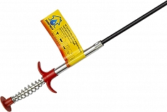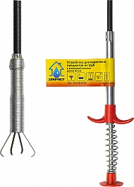 - Металлическая спираль 90 см в виниловой оплетке с насадкой зажимом и рукояткой с кнопкой позволяют извлекать предметы из сливов, труб и других узких мест